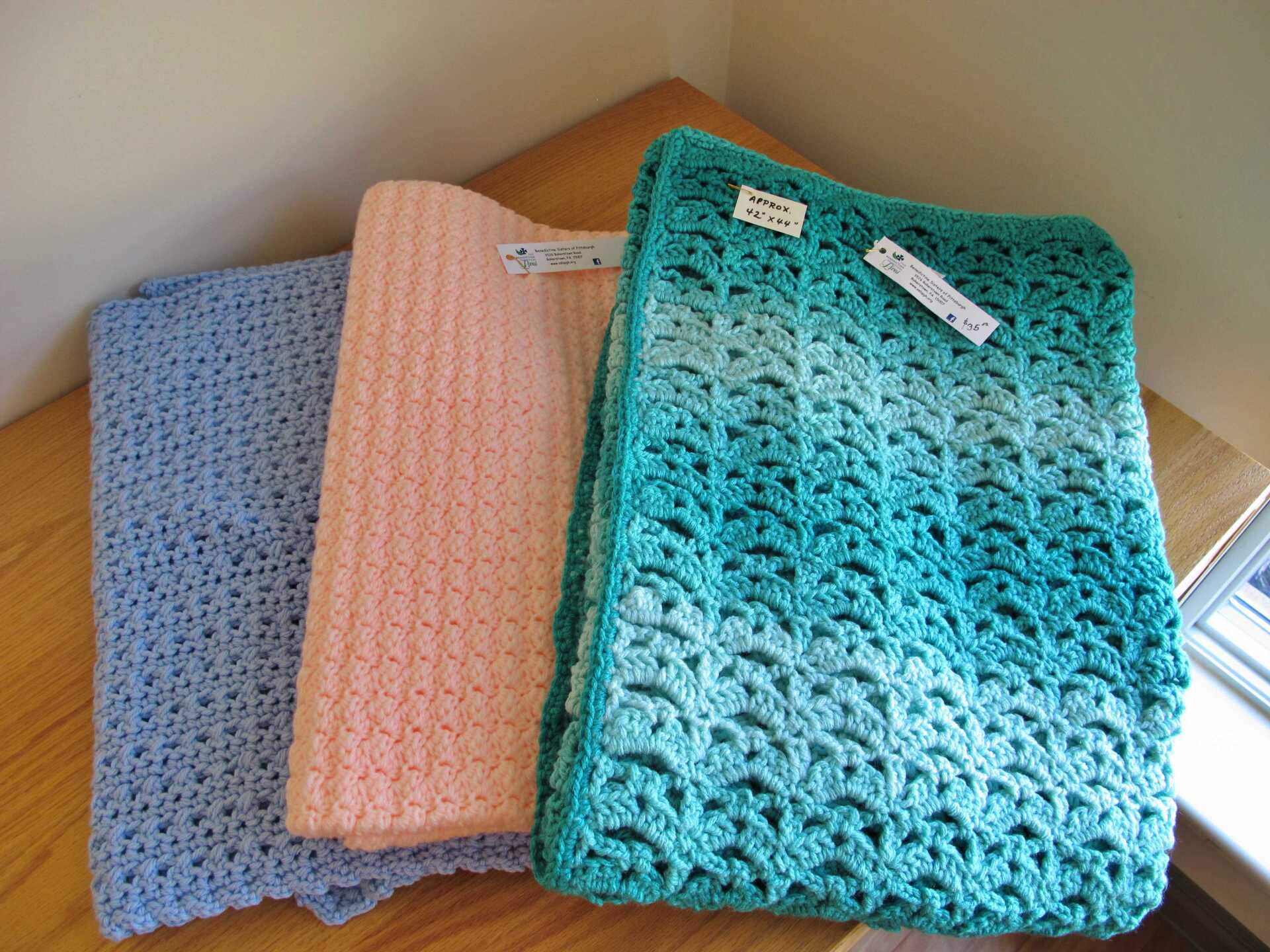 - Children's items: bibs, crocheted blankets; necklaces and bracelets; crayon/coloring book totes.